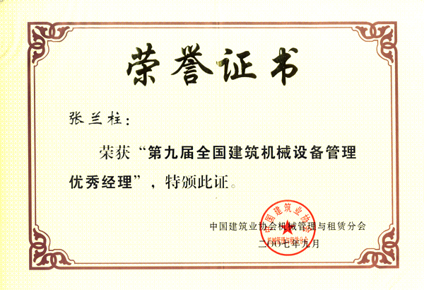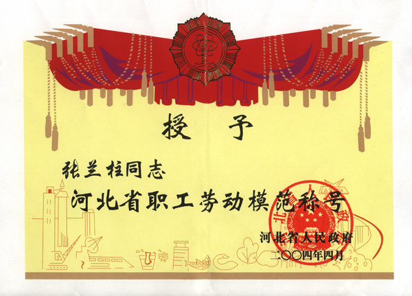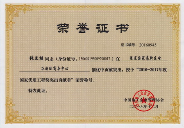 張?zhí)m柱同志以他杰出的工作業(yè)績(jī)被各級(jí)領(lǐng)導(dǎo)機(jī)關(guān)授予:全國、河北省、保定市建筑業(yè)優(yōu)秀企業(yè)經(jīng)理;優(yōu)秀企業(yè)家;優(yōu)秀共產(chǎn)黨員;優(yōu)秀黨務(wù)工作者;優(yōu)秀思想政治工作者;安全生產(chǎn)、工程質(zhì)量管理先進(jìn)個(gè)人;河北省優(yōu)秀經(jīng)理管理者;河北省建設(shè)系統(tǒng)勞動(dòng)模范;河北省勞動(dòng)模范等榮譽(yù)稱號(hào)